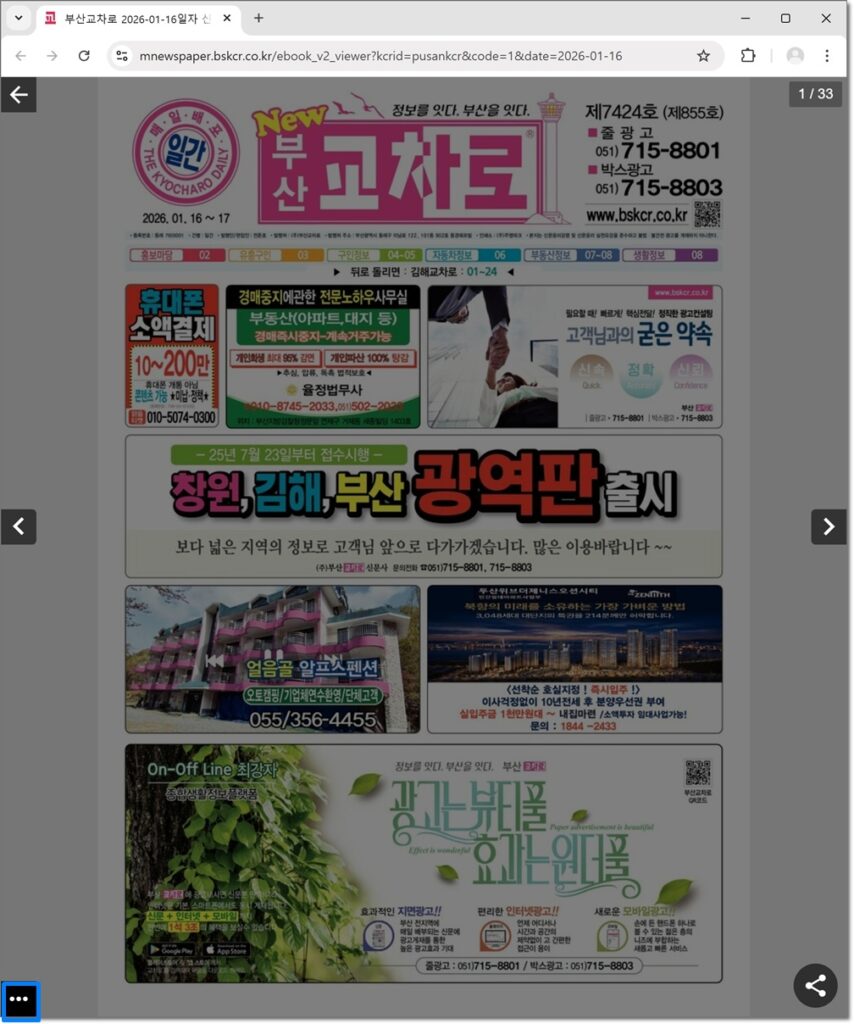 부산교차로를 신문 그대로 보시려면 아래의 순서대로 진행을 하시면 됩니다.