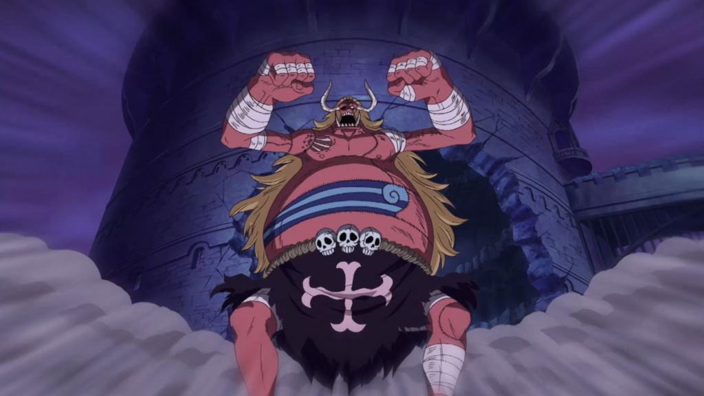 그 사이 오즈와의 전투는 점점 밀리고, 로빈마저 그림자를 빼앗기며 위기에 처한다. 그때 루피가 100명의 그림자를 흡수해 ‘나이트메어 루피’로 등장, 압도적인 힘으로 오즈를 쓰러뜨린다. 모리아는 이에 맞서 1000개의 그림자를 자신의 몸에 흡수하지만, 밤이 끝나기 직전 루피가 그를 쓰러뜨리며 모두의 그림자가 되돌아간다.